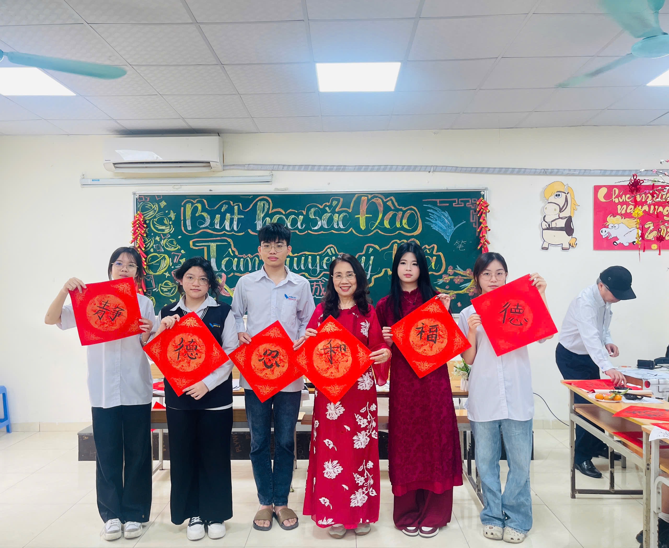 Trong 30 phút trải nghiệm với chủ đề “Tâm Truyền Ý Mã”, mỗi học sinh đã viết nên một con chữ mang theo ước nguyện đầu xuân: chữ An cho gia đình, chữ Thành cho học tập, chữ Chí cho bản lĩnh và khát vọng vươn lên trong năm mới. Đặc biệt, sự giao thoa giữa lòng thành và bút lực đã hội tụ, tâm hồn thầy và trò như hòa làm một, để rồi những nét chữ ấy cùng kết tinh thành một biểu tượng của sức mạnh và khát vọng: “ĐÀO DUY TỪ – MÃ ĐÁO THÀNH CÔNG” – kỳ vọng về một năm mới đột phá qua khẩu hiệu đầy khí thế.
