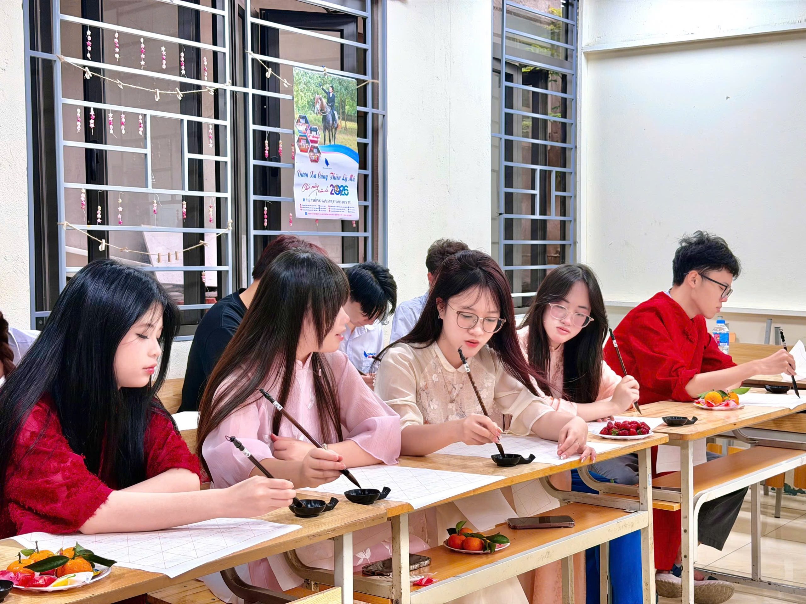 Giữa sắc đào đầu xuân và không khí rộn ràng của năm Bính Ngọ 2026, các em học sinh đã cùng nhau trở về với một giá trị cốt lõi của văn hóa Việt: “Trọng chữ – Kính chữ”. Hình ảnh nghiên mực, giấy hồng điều và ngọn bút lông không chỉ gợi nhắc truyền thống hiếu học, mà còn mở ra hành trình rèn Tâm – luyện Ý trong từng nét chữ đầu năm.