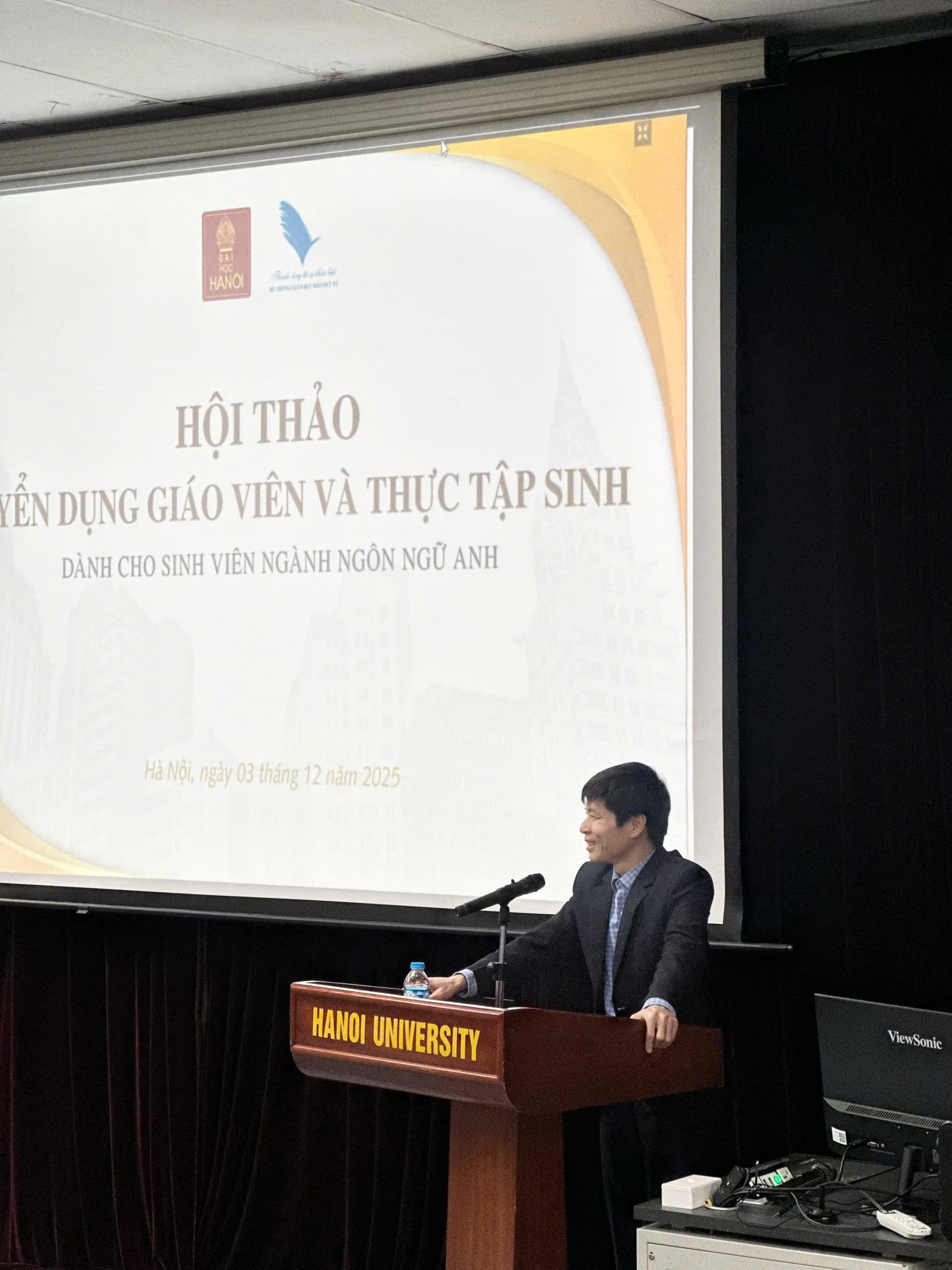 🌺Không chỉ dừng lại ở sự giới thiệu, Giáo sư mang đến cho sinh viên HANU những thông tin quan trọng về kế hoạch tuyển dụng giáo viên và thực tập sinh tiếng Anh có hưởng lương. Những cơ hội này được thiết kế không chỉ để tuyển dụng, mà để đầu tư vào con người, tạo nền tảng nghề nghiệp bền vững cho những giáo viên trẻ đầy tiềm năng.